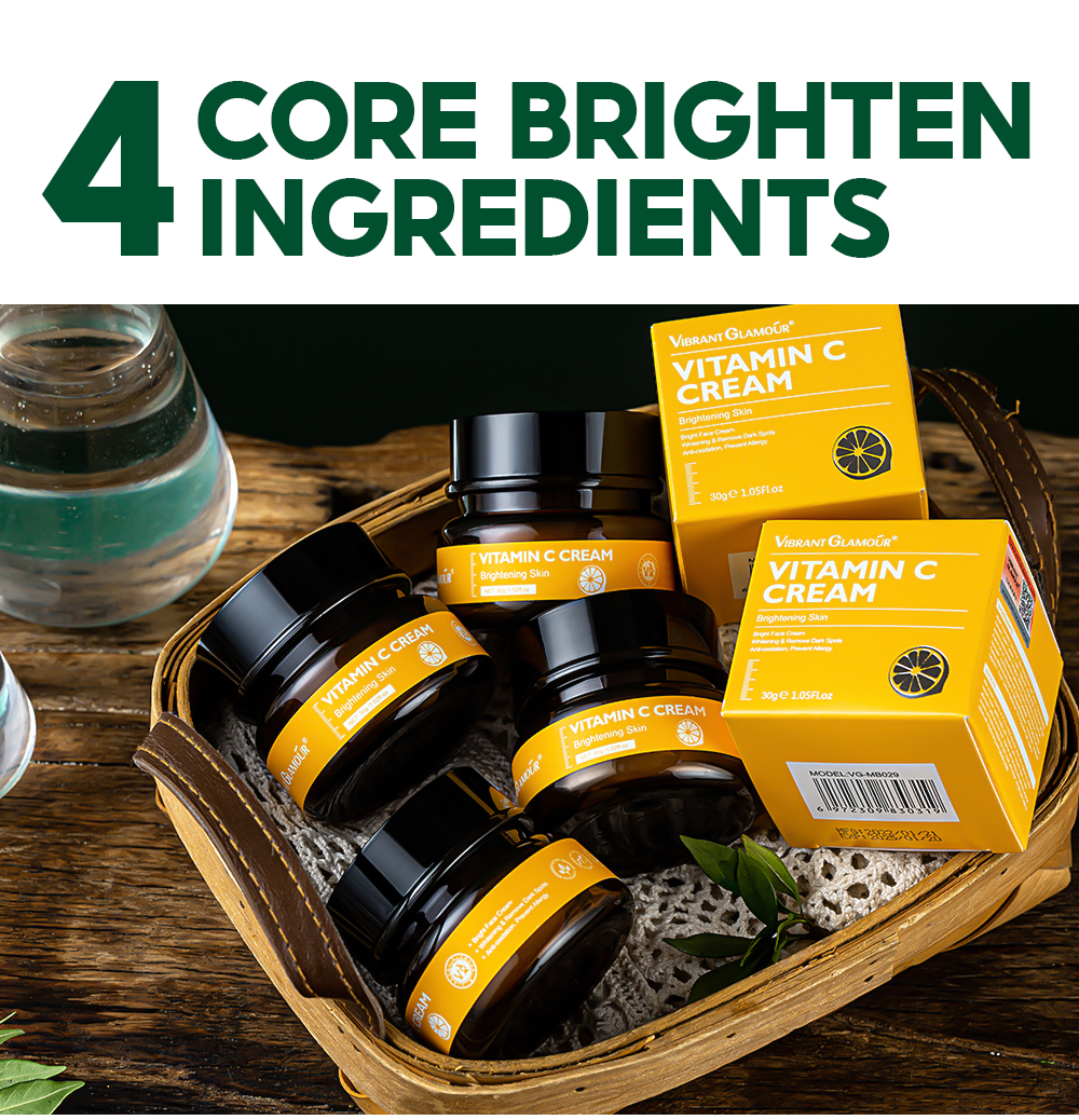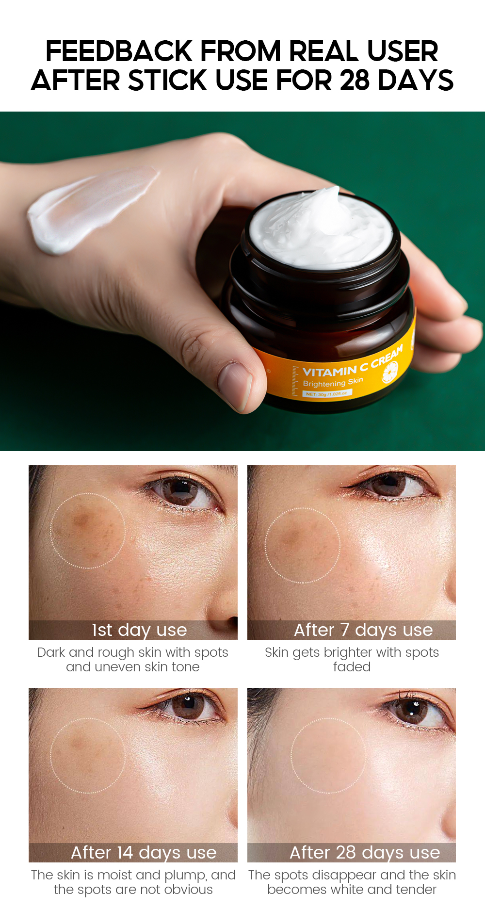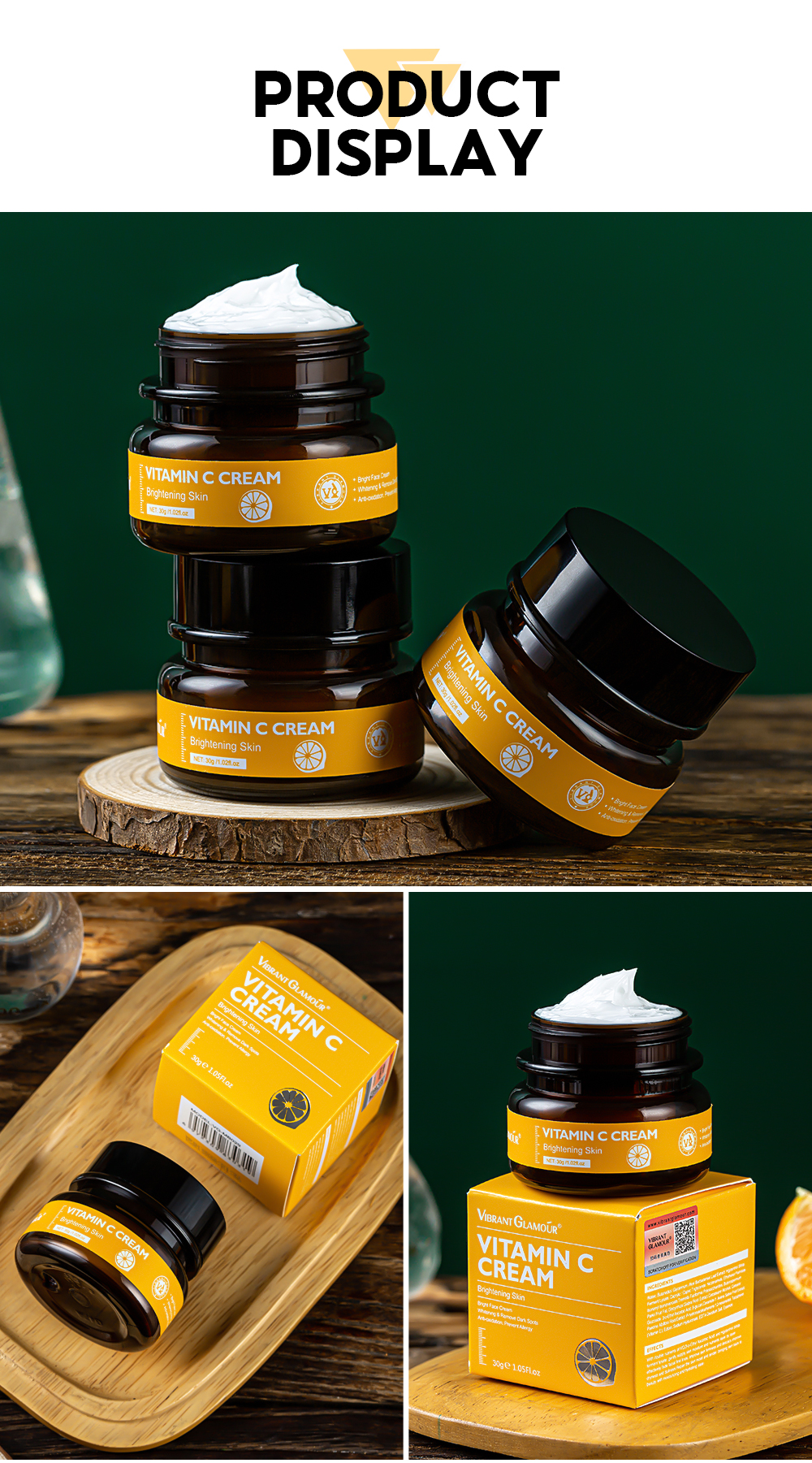 🍊[Product Name] VIBRANT GLAMOUR Nature Vitamin C Face Cream Brightening Whitening Moisture Cream for Face & Body Facial VC Freckles Remove Dark Spots Skin Nourish Brighten Remove Freckle Anti Aging Refreshing Not Greasy 50g