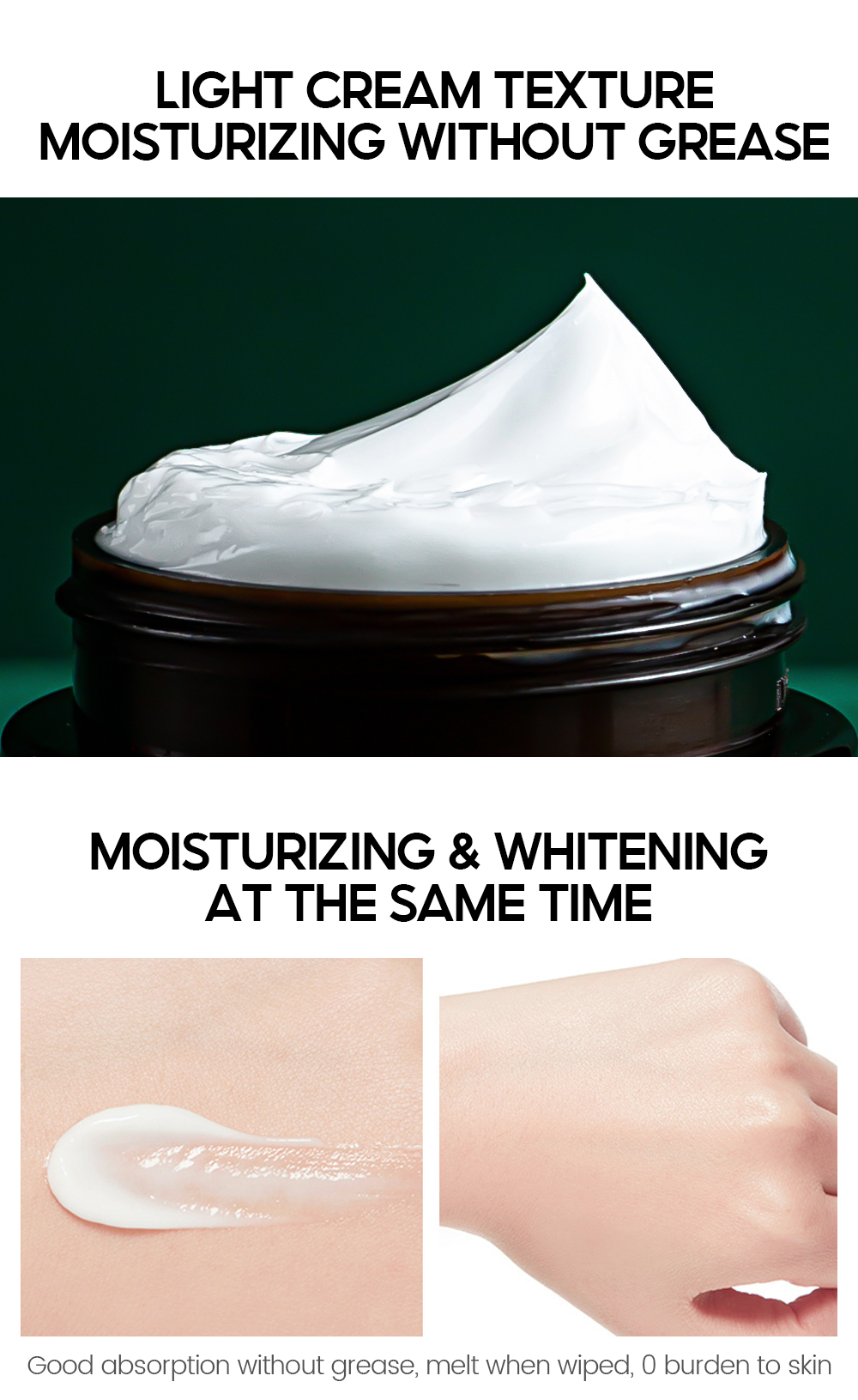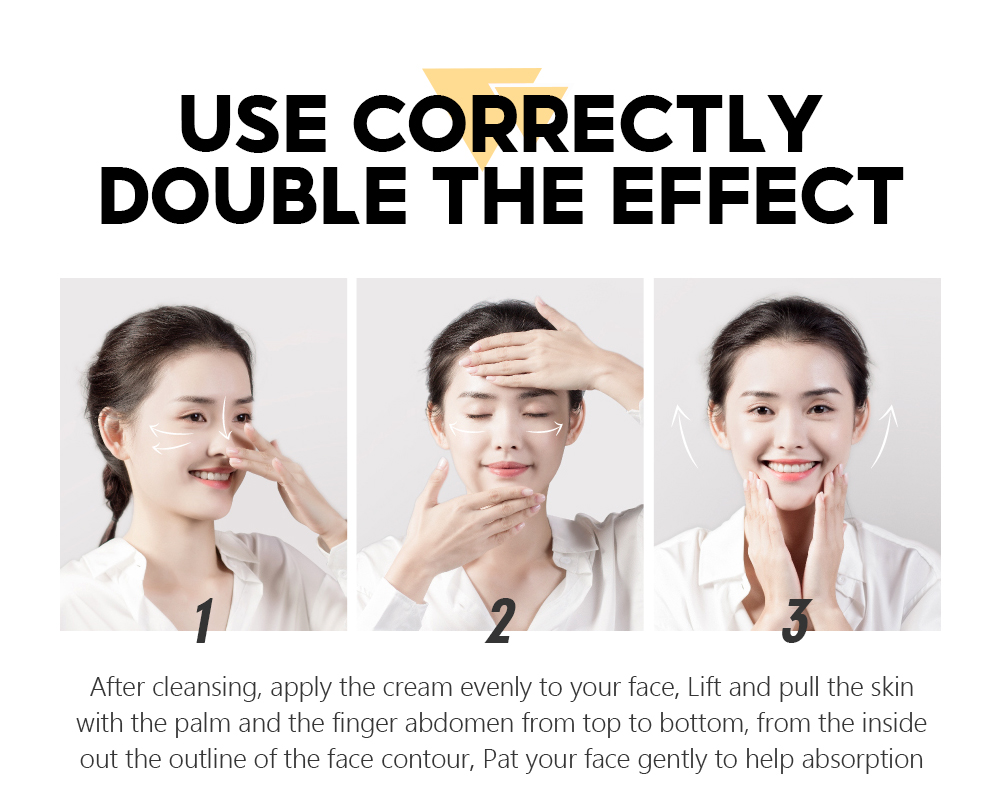 After cleansing, apply toner first, then apply an appropriate amount of cream onto your facial skin, and gently massage with fingers till it is fully absorbed.